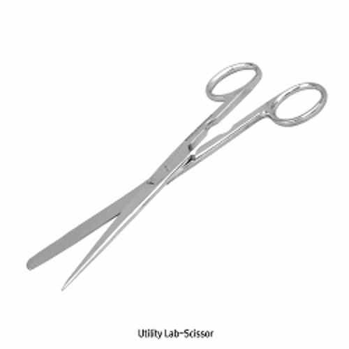 Utility Lab-Scissors, with Stopper Lifter, L150mm With Sharp-Blunt Tip, Stainless-steel 430, Rustless, 실험실용 다용도 가위