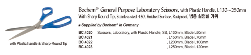 Bochem® General Purpose Laboratory Scissors, with Plastic Handle, L130~250mmWith Sharp-Round Tip, Stainless-steel 430, Finished Surface, Rustproof, 범용 실험실 가위