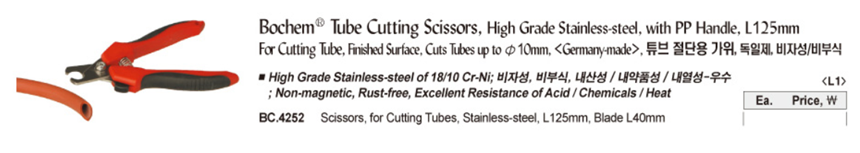 Bochem® Tube Cutting Scissors, High Grade Stainless-steel, with PP Handle, L125mmFor Cutting Tube, Finished Surface, Cuts Tubes up to Φ10mm, , 튜브 절단용 가위, 독일제, 비자성/비부식