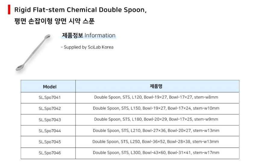 품명 평면 손잡이형 양면 시약 스푼 Rigid Flat-stem Chemical Double Spoon