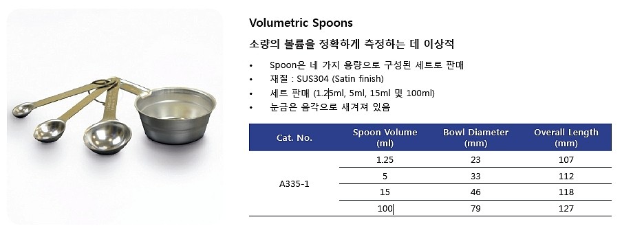 품명 소량의 볼륨을 정확하게 측정하는 데 이상적 Spoon은 네 가지 용량으로 구성된 세트로 판매