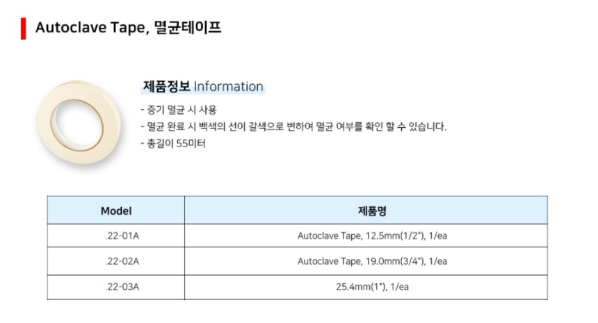 멸균 완료시 백색의 선이 갈색으로 변하여 멸균 여부를 확인 할 수 있습니다.