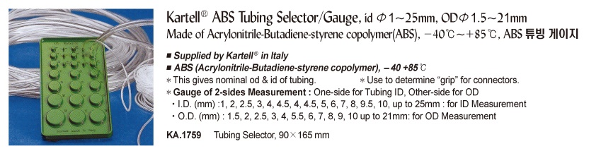 Kartell® ABS Tubing Selector/Gauge, id Φ1~25mm, ODΦ1.5~21mmMade of Acrylonitrile-Butadiene-styrene copolymer(ABS), -40℃~+85℃, ABS 튜빙 게이지