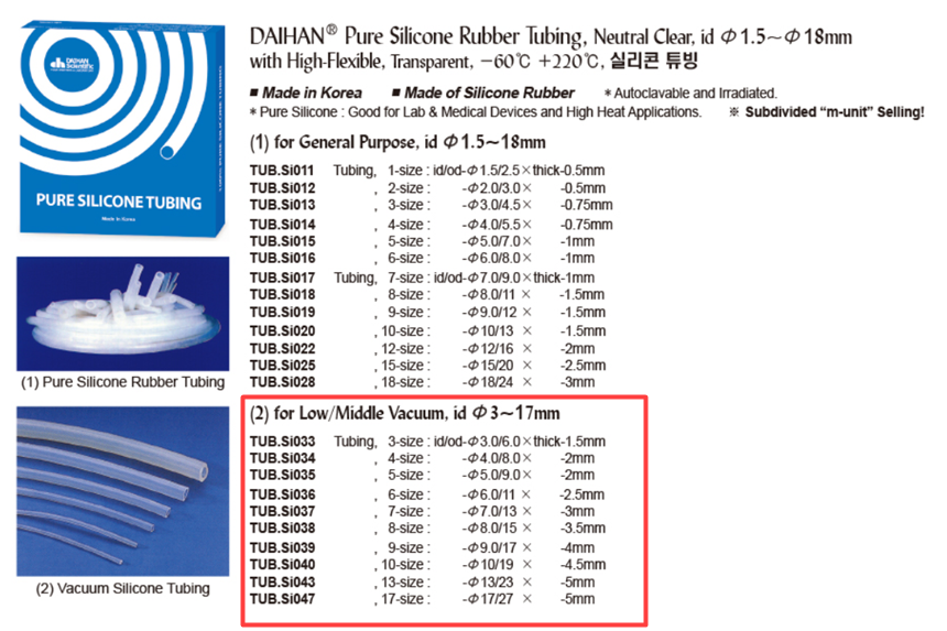 DAIHAN® Pure Silicone Rubber Tubing, Neutral Clear, id Φ1.5~Φ18mm with High-Flexible, Transparent, -60℃ +220℃, 실리콘 튜빙