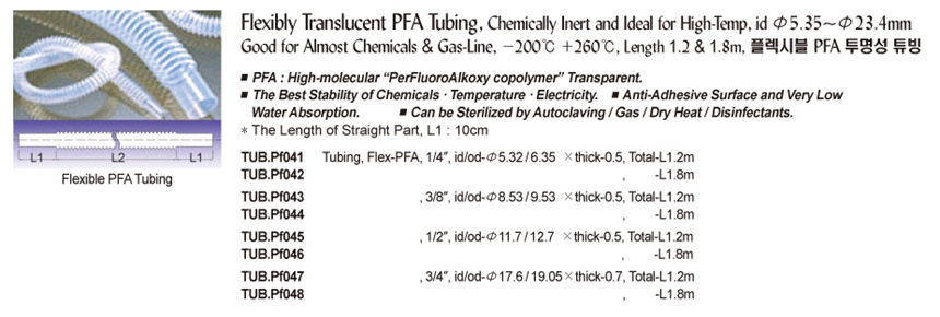 Flexibly Translucent PFA Tubing, Chemically Inert and Ideal for High-Temp, id Φ5.35~Φ23.4mmGood for Almost Chemicals & Gas-Line, -200℃ +260℃, Length 1.2 & 1.8m, 플렉시블 PFA 투명성 튜빙