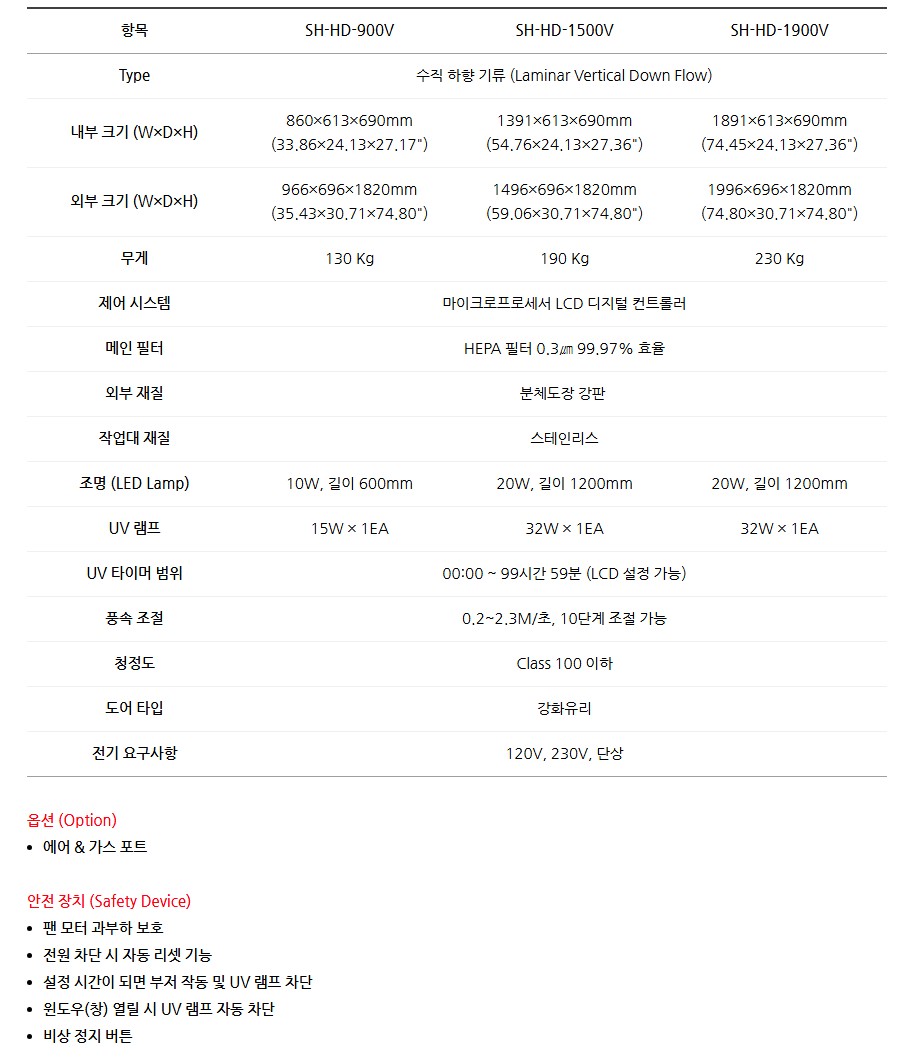 품명 크린벤치 Laminar Clean Bench SH-HD 시리즈, HEPA 필터와 UV 살균 기능으로 실험실·산업체에 최적화된 청정 작업 환경 제공