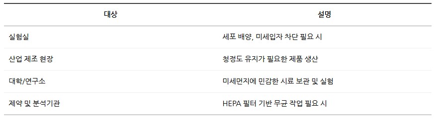 공기 중의 미세먼지로부터 민감한 시료 실험을 보호합니다.