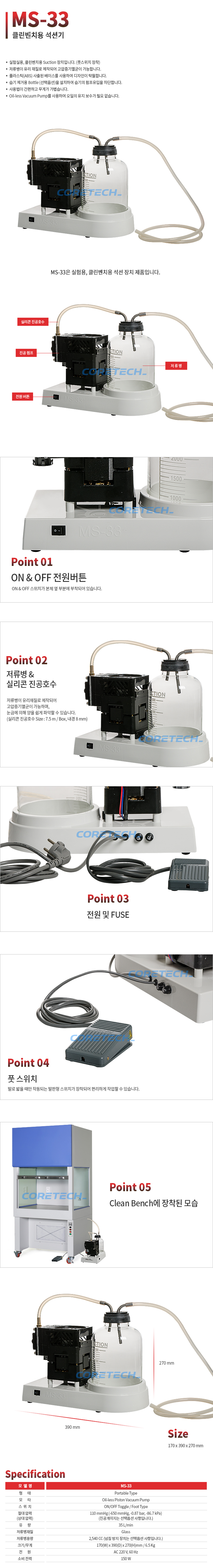 클린벤치용 석션기 (풋 스위치 포함) MS-33