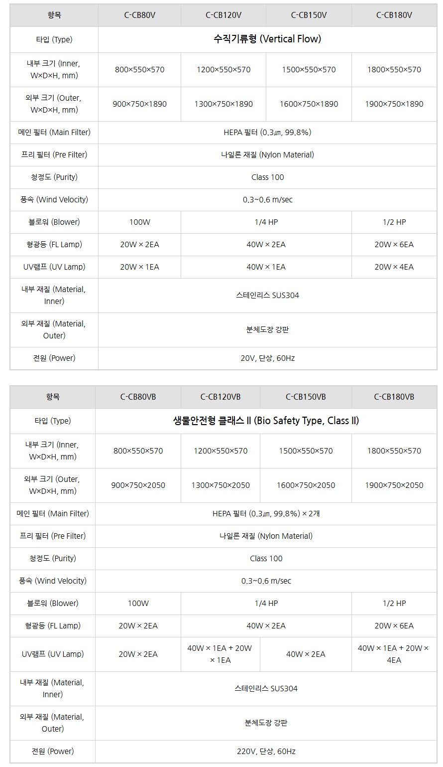 클린벤치 Clean Bench 무균작업대 실험실 작업대 C-CB 시리즈