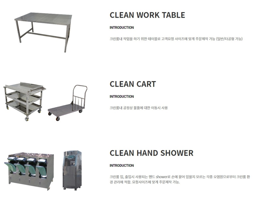 품명 크린룸내 작업을 하기 위한 테이블