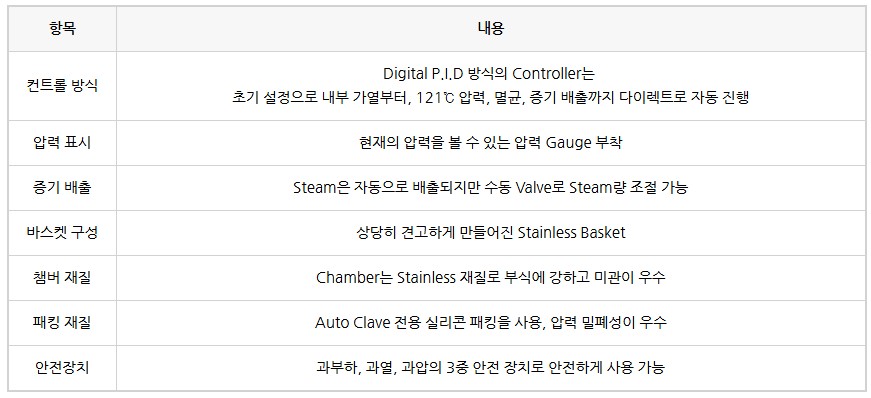 디지털 PID 방식의 온도 제어로 정밀한 멸균 조건을 설정할 수 있으며,