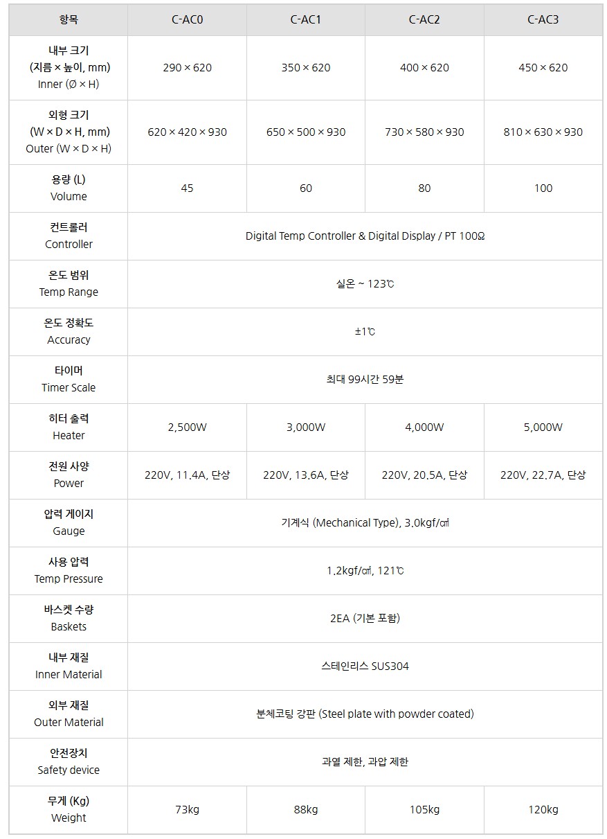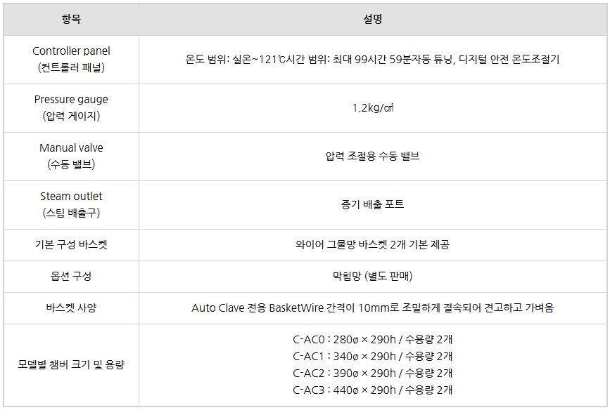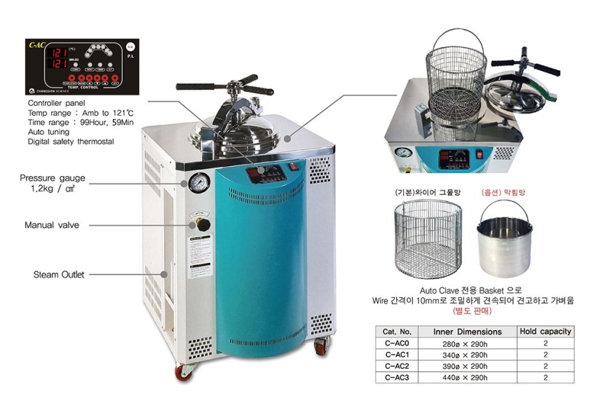 고압멸균기 디지털 컨트롤 고압스팀 타이머 내장형 121도 고온 살균 C-AC 시리즈