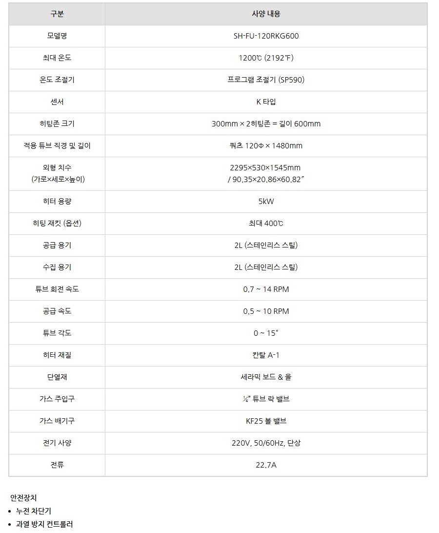 고온에서도 안정적인 회전이 가능하며, 600mm 히팅존과 120mm 직경 쿼츠관을 갖춘 실험실용 고온 처리장비입니다.