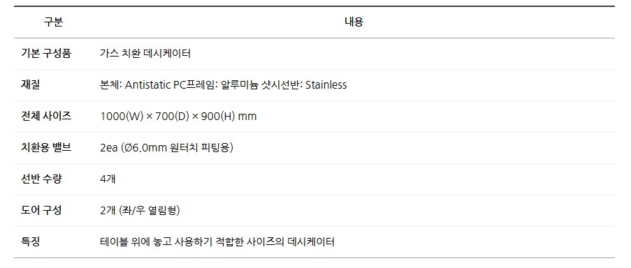 테이블 위에 올려 쓰기 좋은 소형 구조로, 실험실·연구소의 시료 보관 및 건조 작업에 최적화된 장비입니다.