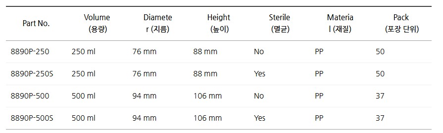 멸균 파우더 보틀 SteriWare Powder Bottle 8890P