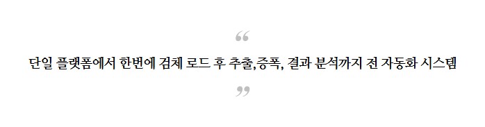 모든 과정을 하나의 플랫폼에서 자동으로 수행하는 전자동 분자진단 시스템입니다.