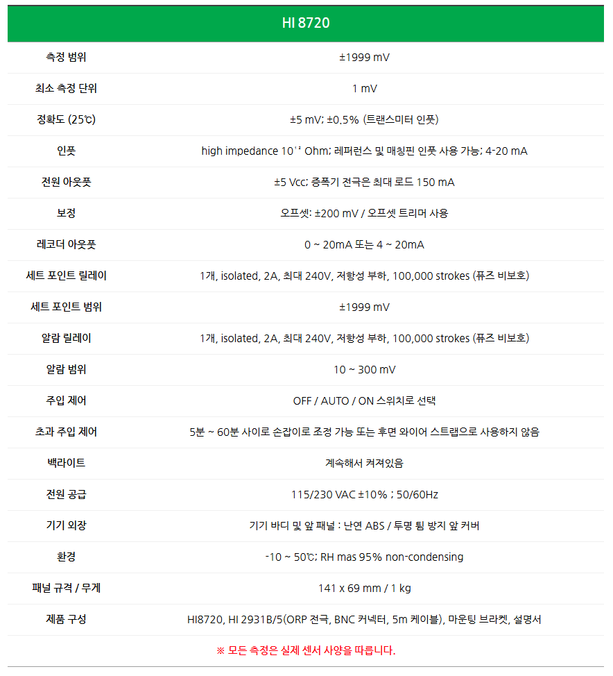ORP 아날로그 컨트롤러 산업용 산화환원계 수처리 공정용 mV 제어 장치 HI8720
