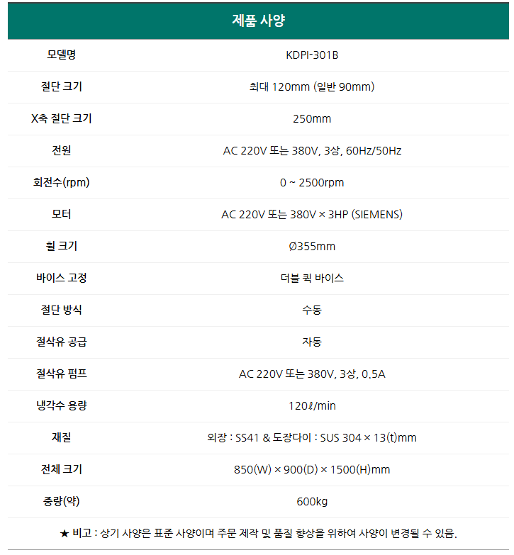 대형 시편절단기 연마 절단기 수동형 금속재료 시편 커터 KDPI-301B