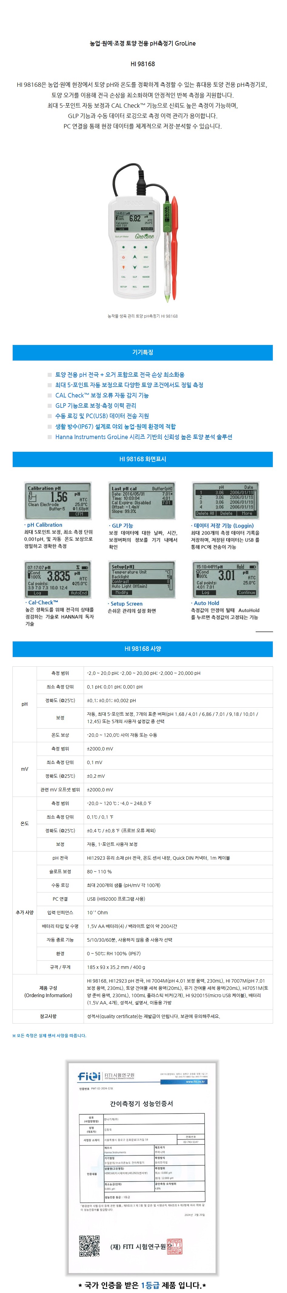 품명 농업·원예·조경 토양 전용 pH측정기 GroLine HI 98168