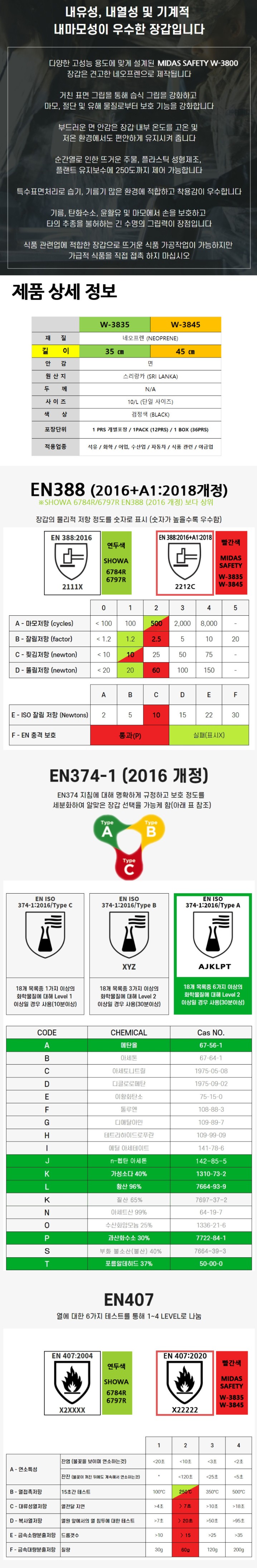 품명 MIDAS 네오프렌 장갑 W-3835 내화학 산업용 보호장갑